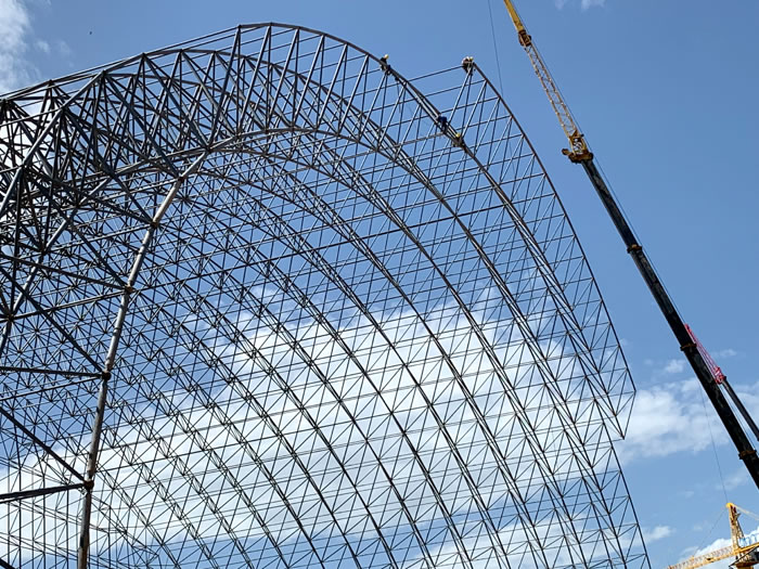 (2)网架加工前应对现场尺寸进行复测,确认无误后方可进行加工、安装;网架制作、运输、安装应遵守《空间网格结构技术规程》JGJ7-2010、《钢网架玉门螺栓球节点》JG/T 10-2009、《钢网架玉门螺栓球节点用高强度螺栓》 GB/T 16939-2016、《钢结构玉门工程玉门施工规范》 GB50755-2012、《钢结构玉门工程施工质量验收标准》 GB50205-2020。